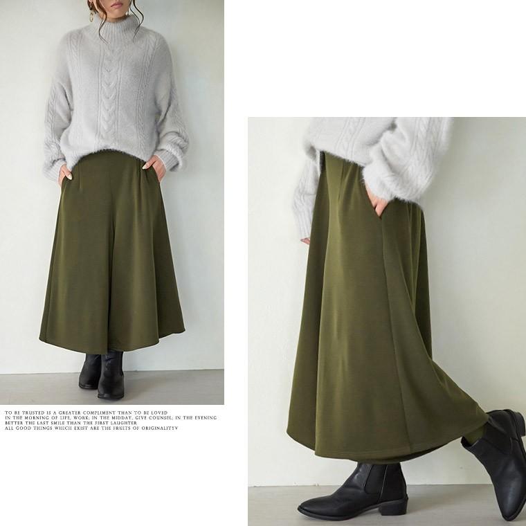 膝丈フレアスカンツ Primazel プリマゼル レディース 春 夏 ミモレ丈 膝下 ロング ミディアム シンプル ウエストゴム ポケットあり 無地 ボリューム ガウチョ パンツ ブラック ネイビー カーキ ベージュ カジュアル Primazel プリマゼル ファッション通販リュリュ